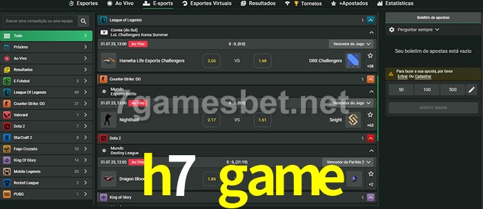 O h7 game oferece uma grande seleção de opções de apostas em e-sports com probabilidades competitivas